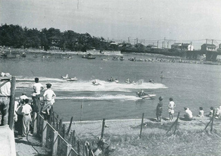1951年(昭和26年)施行された「モーターボート競走法」を受け、浜名湖競艇組合が組織されました。そしてこの年の8月、舞阪町弁天島の乙女園で競艇が初開催されました。