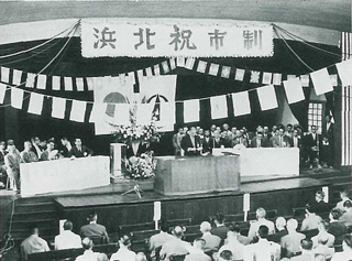 7月1日、浜北市が誕生。全国で556番目、県下18番目の市でした。当日は記念式典や祝賀パレードなどが行われ、新しい市の誕生を祝いました。