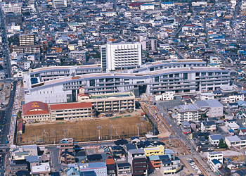 大学のある東地区は、昭和62年度から土地区画整理事業を行い、都市機能を整備。バブル崩壊後の経済低迷の中、中心市街地活性化計画の重点整備地区の一角として、1994年(平成6年)に完成したアクトシティと連携して浜松都心の商業・学術・文化・市民生活の拠点としての役割を期待されました。その中で、静岡文化芸術大学は、中心市街地の教育文化ゾーンの核として、市民に開放され、地元産業界との連携・協力を進める、地域に密着した大学となることを目指し、設立しました。
