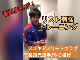 インカレ優勝経験のある、やり投げトップアスリート・長沼元選手が紹介する「リスト補強トレーニング」です。水の中に手を入れてできる簡単なトレーニングです。お風呂の中などで挑戦してみましょう!