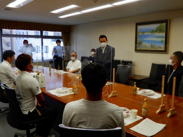 グループから「三ヶ日の摘果青みかんを使った商品開発や絹・織物文化の復活に向けての活動など、今後も地域に根差したまちの活性化に取り組んでいきたいと思います。」との提言に、市長は「活動は、摘果青みかんの有効活用だけでなく、まちの活性化にもつながっており、日々進化していると感じました。官民連携で、市ができることは協力させていただきたいと思います。」と伝えました。