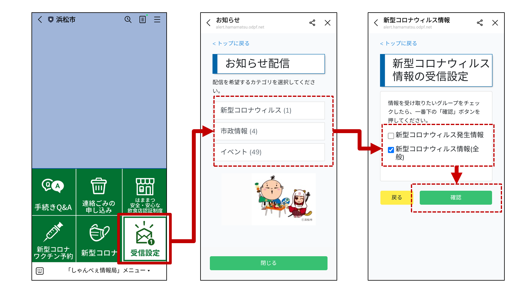 「受信設定」で選択していない情報は原則配信されませんので、必ず設定を行っていただきますようお願いします。(設定の変更は「受信設定」からいつでも行なえます。)