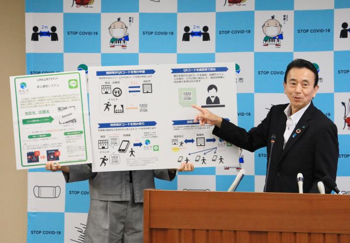 記者:基礎自治体では初めてというのは、LINEを活用した追跡のやり方が初めてという理解でよろしいですか。