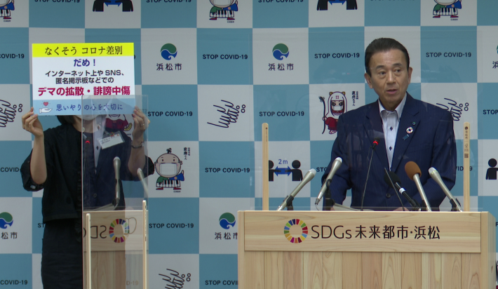 市長:こういう感染状況は浜松だけではありません。全国的にも市中感染が広がっていますし、誰が感染してもおかしくない状況でございます。東京ですと、感染経路不明の患者の方が多くなってきているし、家庭あるいは職場等での感染の割合が多くなっています。こうなってくると、本当に誰が感染してもおかしくないという状況ですので、明日は我が身だということを踏まえて、人権上の問題もありますので、過度の誹謗中傷は慎んでいただきたいと思います。