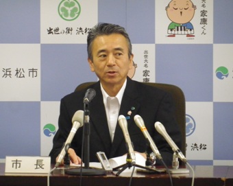 記者:先日、国から浜岡原発で事故が起きた場合の、放射能汚染の予測図が発表されましたが、浜松市として独自に防災計画を立てられる予定があるのかどうかをお伺いします。