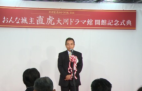 本日は、「おんな城主 直虎」大河ドラマ館のオープニングセレモニーに多くの皆さまのご列席を賜り、誠にありがとうございます。そして本日は、特別に三浦春馬さん、新井美羽さんにお越しいただき、ご来賓として川勝知事にもお越しをいただきました。それからドラマの総元締めでもあります岡本チーフプロデューサーにもお越しいただき、本当にありがとうございます。