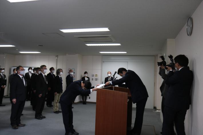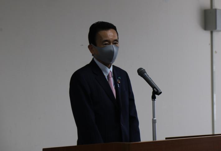 このたび、新しい職務に昇任をされた幹部職員の皆さま、おめでとうございます。一層皆さまの職務に精励をしていただきたいと思っております。コロナ感染症拡大も浜松におきましては、医療センターのクラスターが収まり、一応小康状態でございますけれども、全国的には感染拡大が続いております。特に大阪が大変急増しているということで、初めて「まん防」、いわゆる「まん延防止等重点措置」が発令されるということでございまして、ぜひ私たちも緊張感を持って臨んでいかなければいけないと思います。ワクチン接種も始まって、重症化予防や感染拡大阻止がなされていくと思いますけれども、まだまだそれには時間がかかると思いますので、それまではしっかりと感染抑止とコロナによって影響を受ける皆さまへのさまざまな対策に注力していかなければいけないと思います。