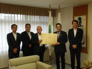 浜松磐田信用金庫様には、本市の「天竜浜名湖鉄道沿線魅力向上事業」の趣旨にご賛同のうえ、平成30年度、令和元年度の2か年にわたり、多額の寄附をいただきました。今回の紺綬褒章について、お祝い申し上げるとともに、あらためて深く感謝申し上げます。「花とみどりのスポット」を見るために、より多くの皆様にお越しいただくことで、天浜線の利用者の増加、沿線地域の活性化につながることを期待しています。