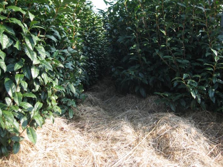敷草がまるで毛布のような茶畑