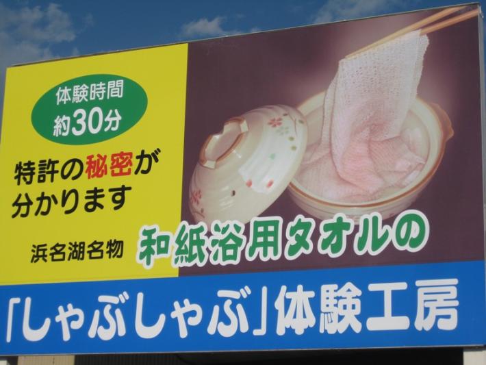 松下さんは、「ものを作って、製品を売るということは、もちろん大事だけれども、もっと大事なのは、地域の事を知ってもらって、多くの人に訪れてもらう産業観光が重要だ。」と言う。実際に浜名湖へ来てもらって、和紙タオルのしゃぶしゃぶ体験をしてもらい、「浜松のことを知ってもらうことが一番」だと考えている。全国の各地域でタオルを売るのは、生活していく上で必要な事だが、その製品を売るという行為を浜松地域の活性化にどう繋げていくか?松下さんは、この事を一番に考えているのである。