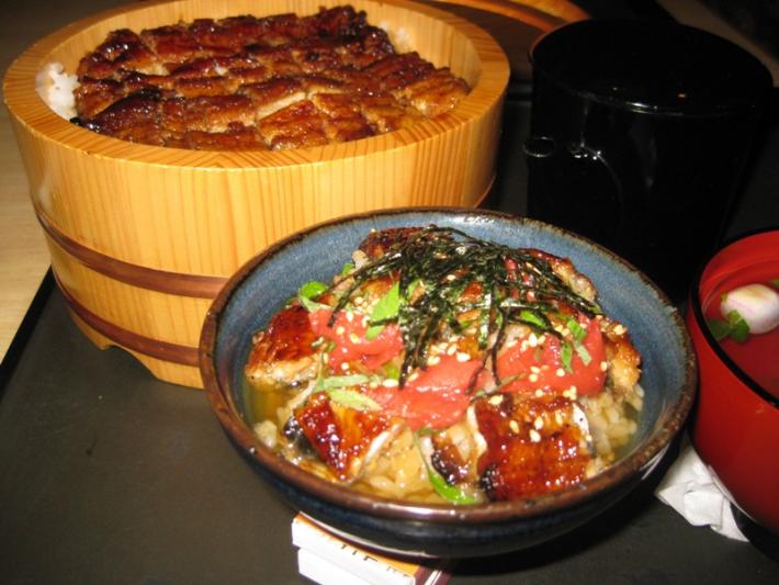 「うなぎと梅干」というと昔から、「食べ合わせが悪い。」と言われている。この食べ合わせが悪いとされている2つの食材をあえて合体して、メニューにしたのはそれなりの意味がある。店の従業員の賄い料理として出したうなぎと梅干と合わせた茶漬けがまた美味で、これを店のメニューとして取り入れたのである。ご主人いわく、「紀州の梅のような甘い梅干しは駄目。かといって酸っぱ過ぎる梅干しも駄目。ほど良い塩加減の梅干しが、うなぎとの相性が最高。」とのこと。家庭でもできるため、一度試してみてはいかがでしょうか。