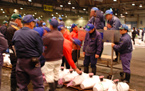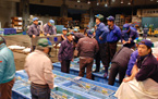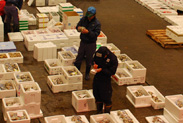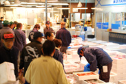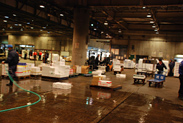 水産棟は、せりが終わって分荷・搬出と同時に片付けの作業もはじまります。