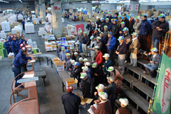市場の1日(せりの様⼦など)を写真と映像で紹介します。