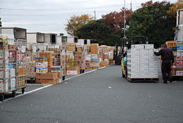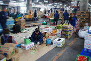 仲卸業者は、せり等で買った品物を市場内の自分たちの店へ運び、小分けして並べます。バイヤーは買った荷物を仕分けし、それぞれのトラックに積んで市場外の取引先などへ配送します。