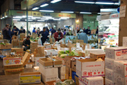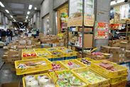 仲卸業者はせりで仕入れた商品を小分けし値段を決め市場内の仲卸店舗に並べます。仲卸店舗には市場外から売買参加者、買出人が多く集まり、様々な生鮮食料品を仕入れていきます。