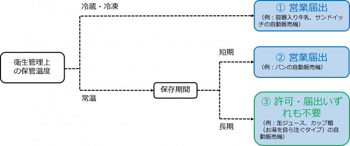常温で長期保存できる食品を販売する自動販売機は許可届出が不要です。