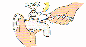 3.蛇口の上部をはずし、ピンセットなどで古いパッキンを取り出し、新しいものと取り替えます。