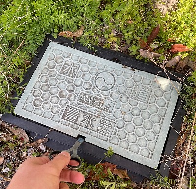 1.敷地内のボックスを開けます。(開ける際、指ではケガをする恐れがあるため、ドライバーなどを使います。)