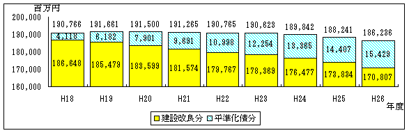 平成17年度までの資産取得分については確定値、平成18年度以降は建設改良費及び流域整備事業費の計画値により算出した。 |