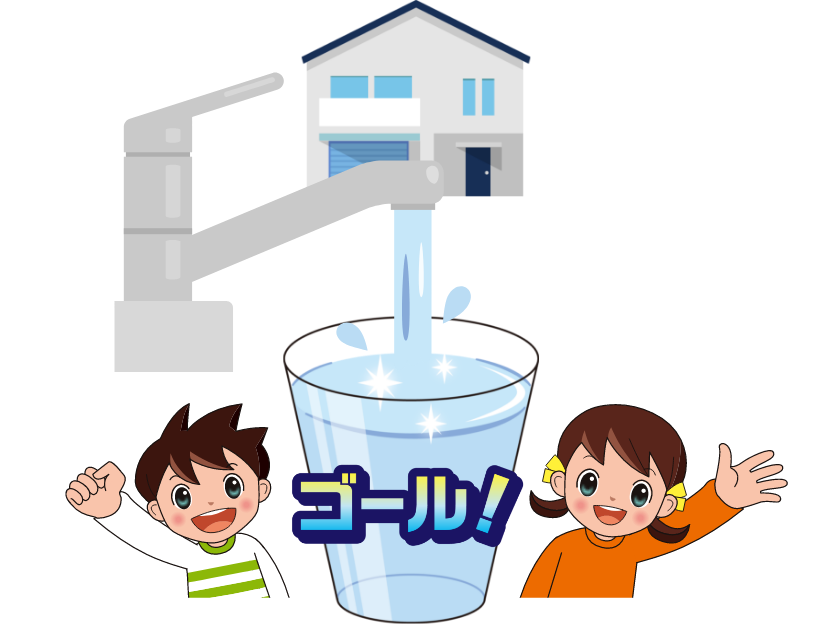 - 浄水場からみんなの家までつながっているなんて、水道管ってすごーく長いんだね!
