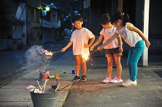 「ぎおん」は、水窪地域の風習でこの2日間だけ花火遊びが許される独特の風習です。 大人もこどももこの時を楽しみに、数日前から花火を買い揃えます。
