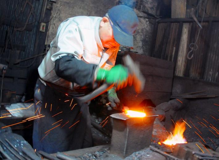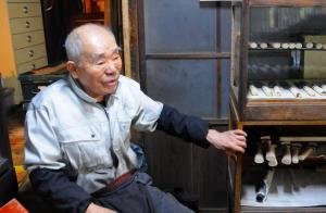 片桐さんは89歳となった今でも現役です。体力的な面では「長時間同じ姿勢でする作業はきつい」と、鍛冶仕事がつらくなってきた部分もありますが、まだまだハンマーを振り下ろす腕には力がこもります。「体力は衰えたけど、技術は少しも衰えないね」と笑顔で語る片桐さん。包丁の製作工程を説明しながら「鋼と地鉄をくっつける作業があってね、これだけはほかの人に負けない自信があるんだ」と誇らしげに語ります。鋼と地鉄をつなげる『鍛接』は、鍛冶仕事のなかでも最も難しい作業の一つですが、長年の経験と勘に裏打ちされた技術をもって、片桐さんは事もなげにこなします。