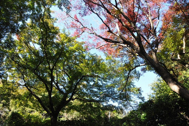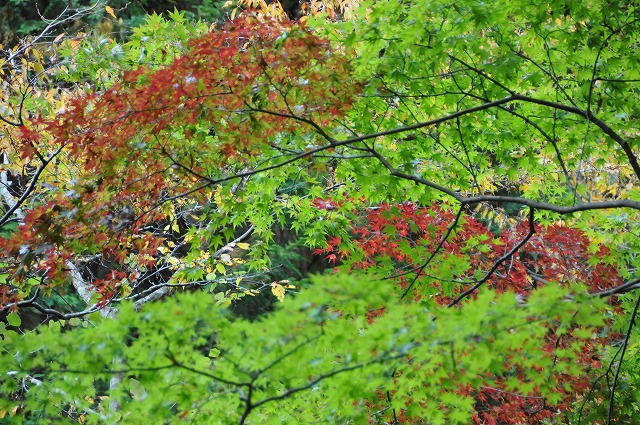 真っ赤に紅葉してるモミジの木もあればさわやかな緑色を残している木もありました。
