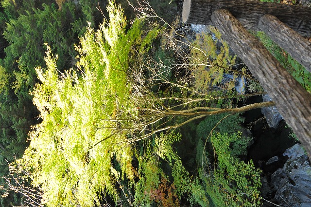 峡谷の上流部にはモミジの木が生えており、滝と紅葉が一緒に楽しめる名スポットです。