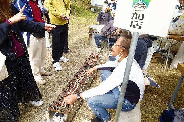 ▲猟友会は仕留めたシカの串焼きやレバー串、シカ汁を販売していました。かなりの人気で午前中の早い時間に売り切れました。