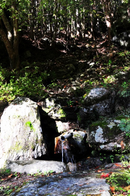 天竜区の紅葉の名所として知られる白倉峡を過ぎた場所にある「長寿の水」。昔から地元の人たちが大切に守り続けてきた水は、その名のとおり「長寿」にご利益があるとされてきたものだ。