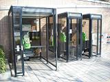 広い公衆電話ボックスは、車いすの人も利用することができます。