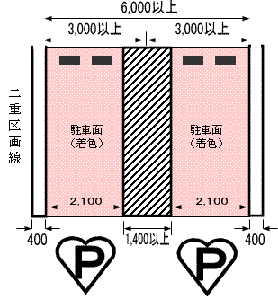 乗降に広いスペースを必要とする高齢者、障がい者、妊産婦、ベビーカー使用者等のための優先駐車場 |