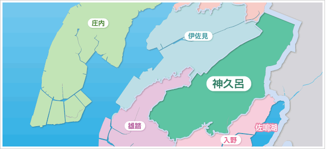 神久呂地区は、神ケ谷町、神原町、大久保町、西山町の4町からなり、三方原台地の南端に位置し、緑に囲まれた豊かな自然環境に恵まれた地域で、北には航空自衛隊浜松基地があります。この地域は三方原用水の完成により、農地のかんがい用水が確保され、農業経営に大きな恩恵を受けており、セルリー、チンゲンサイ、水耕みつば等の産地となっています。また、南には浜松技術工業団地もあり、今後の発展が期待されています。