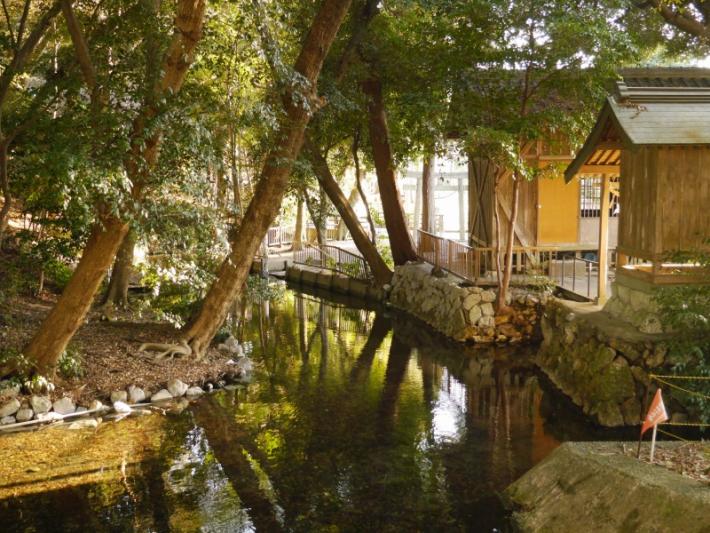 西山町水神の森には、水神社が鎮座し、池には澄んだ水が豊富に湧き出ています。