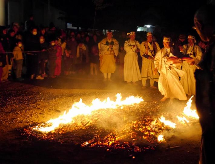 江戸時代末期に、天竜区春野町の火防の神、総本山秋葉山秋葉寺より三尺坊大権現の御神体が分身されました。1月18日は火災・厄難削除の祈とうがあり、火渡りの行事が行われます。厳かな中にも勇壮なその光景は、正月を飾るひとコマとして、近隣の人々に親しまれています。