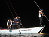 100年余りの伝統を持つ「たきや漁」は、夕闇の中、船の舳先につけた水中灯の光の中に浮かんでくる魚やカニ・エビを突いたりすくったりする、浜名湖独特の漁法です。春から秋にかけて楽しめます。