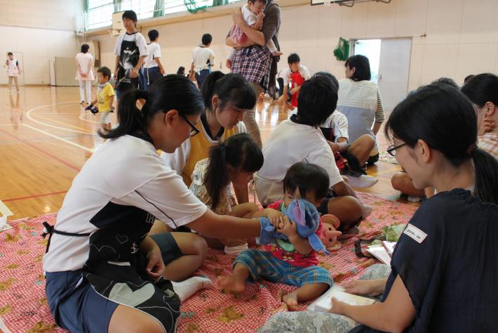 ふれあいサポートネット ふわっとは、次世代を担う子供たちが命の大切さや人との関わりについて、親との関係を乳幼児親子とのふれあい体験を通して学ぶことをサポートすることを目的とした団体です。中学生への未来体験の事業の一環で始めた乳幼児との交流体験がきっかけとなり、平成18年から会を立ち上げて活動しています。市の委託事業として中高生と乳幼児親子のふれあい体験学習の企画、運営、コーディネートをしています。