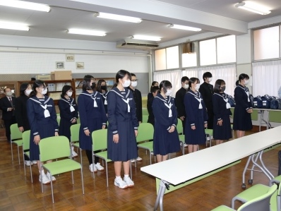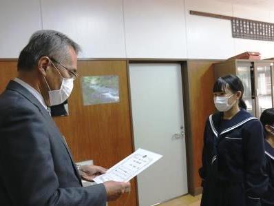 12月22日(火曜日)、浜松市立神久呂中学校、浜松市立舞阪中学校にて、善行奨励賞個人の部と善行奨励賞団体の部の表彰式が行われ、西区長より表彰状の授与が行われました。