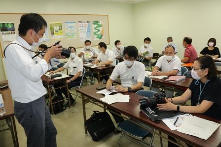 西区区振興課は、9月16日(水曜日)、入野協働センターでコミュニティ担当職員等を対象とした研修会を実施しました。この研修会は、「西区応援団YEEL!」の記事を作成するために必要な技術の向上を目的として、静岡新聞社の荻島浩太氏を講師にお招きし、「目を引く見出しの付け方、写真の撮り方」をテーマとしたお話しをいただきました。担当職員は、見出しの付け方や写真の撮り方を、実際の新聞記事を用いたクイズ形式で学んだり、取材をする際の注意点や、今後の記事のテーマ設定などについても講師のご意見を伺ったりしました。今後の「YEEL!」では、研修会の内容を活かし、さらに見やすく充実した情報をお届けしていきたいと思います。