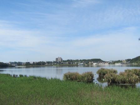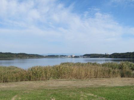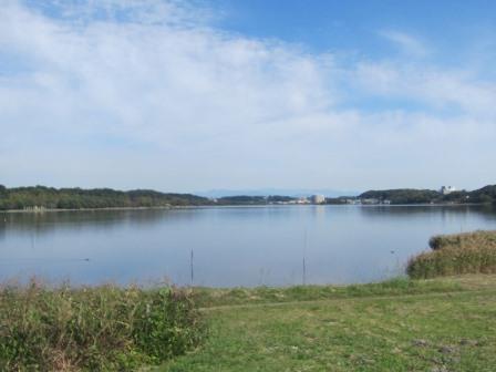 湖の南岸(入野町)から、富塚地区を望んだものです。