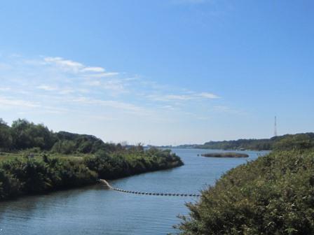 佐鳴湖から浜名湖へ注ぐ、新川(入野中学校付近)。