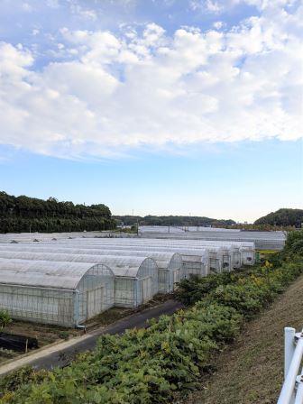 神久呂地区はビニールハウスが多く見受けられます。 環状線を南に下る途中、眼下にビニールハウスが広がっている風景が印象的です。