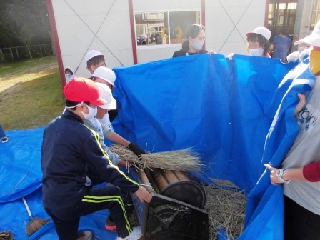 干し終わった稲を、いよいよ脱穀するときがきました!