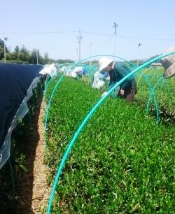 品評会に出すお茶を手摘みしています。