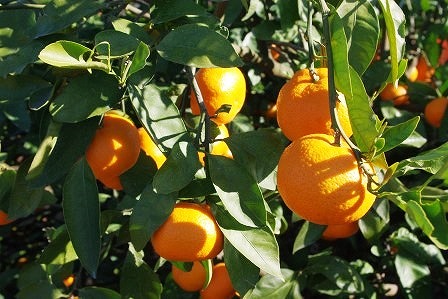 きれいなみかんが、木にたくさん実っています。