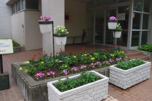 和地協働センターの花壇です。今は植え替えたはかりで小さなお花ですが、日々大きくなり来館するお客様の目を楽しませています。