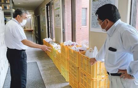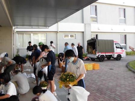 発送作業は、庄内地区・箕輪町交流協会のメンバーと庄内学園中学3年生が協力して行いました。