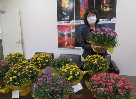 庄内地区では、長野県箕輪町と地域間交流を続けています。そうしたなか、令和元年度からは市の委託事業である「海の子と山の子の地域間交流事業」により、それぞれの地域の子どもを対象とした交流事業も実施しており、その一環として今年の10月12日(火曜日)には、昨年度に続き庄内学園の中学生が育てているポットマム(洋菊)の鉢植えを箕輪町の小学校5校へ贈呈しました。