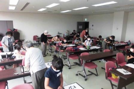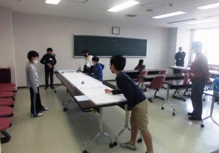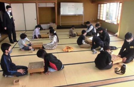 湖東高校囲碁将棋部の皆さんが中心となって指導してます。子供達もお兄さん・お姉さんと一緒に楽しく将棋の駒や碁石に触れています。