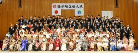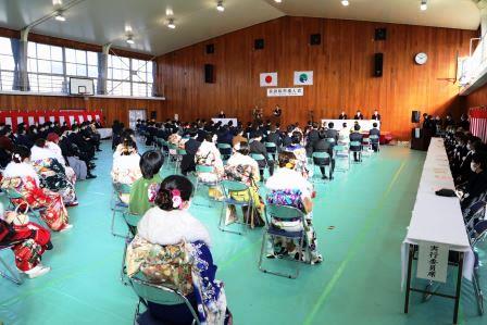 「祝 ご成人」 新成人74名の門出を祝い成人式が盛大に開催されました。